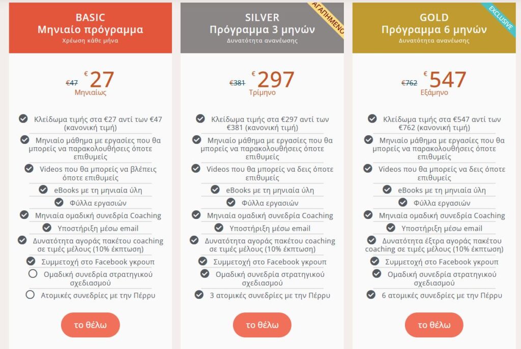 Δυνατότητα έξτρα αγοράς πακέτου coaching σε τιμές μέλους (10% έκπτωση)